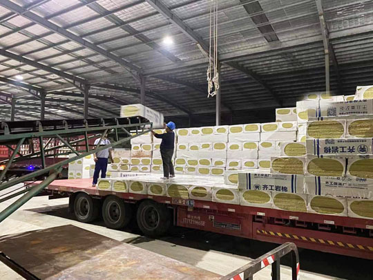 齊工巖棉板是以玄武巖為主要原材料,經過沖天爐高于1450℃使原材料充分熔化,經過高速離心機甩絲,形成巖棉纖維,用高速鼓風機使其噴吹冷卻成型,在噴吹過程中添加一定比例的高效粘合劑,由大型擺錘設備呈三維布棉狀態均勻鋪棉,由履帶將布好的巖棉傳送至壓力設備中,使其形成一定密度的巖棉板,后經高溫烘干爐烘干后,送至冷卻出風口使其冷卻固化,切割不同規格的成品。